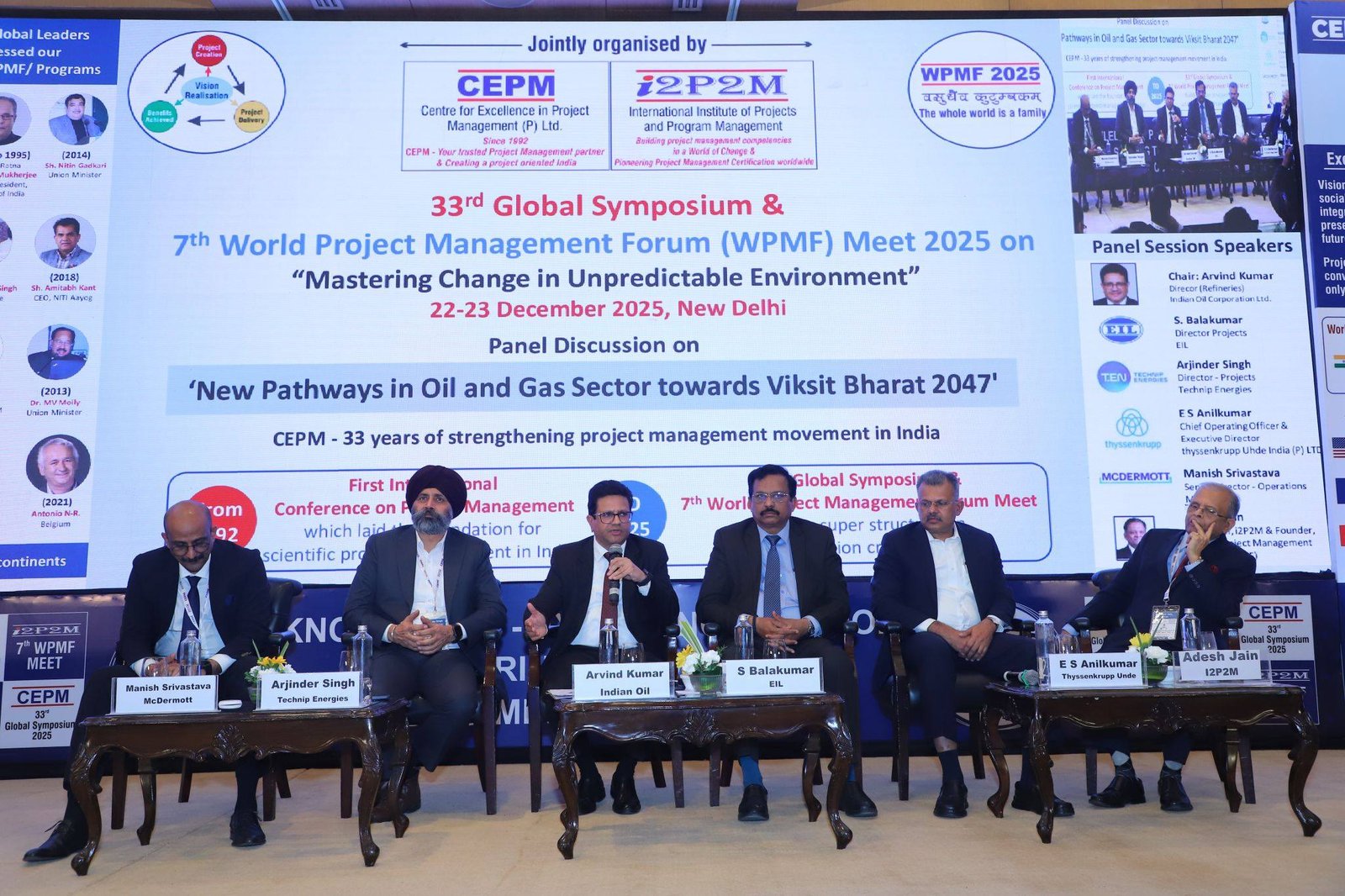 New Delhi (Economy India): Engineers India Limited (EIL) Director (Projects) Mr. S. Balakumar joined industry leaders as a panelist at the 33rd Global Symposium & 7th World Project Management Forum (WPMF) in New Delhi, where he emphasized the need to reimagine project execution frameworks for the Oil & Gas sector as India advances towards the vision of Viksit Bharat 2047.
